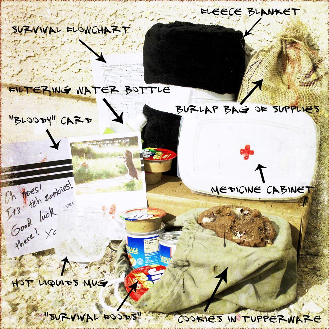 Or you could also do a visual of a survival kit (for a huge conference, for the holiday marketing season… for day-long meetings?) or some other kind of package or kit. Here’s one for the zombie apocalypse: