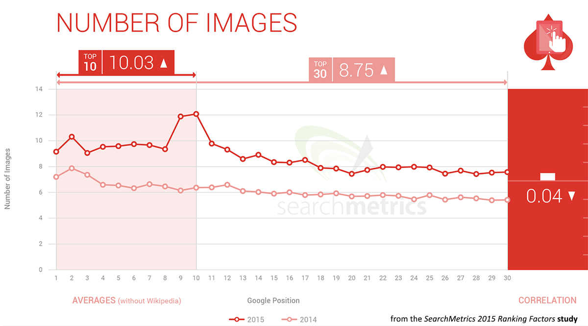 Having enough images is not just an issue of making things pretty. Images are so crucial to the user experience that they’re now a SEO ranking signal. That’s according to the SearchMetrics 2015 Ranking Factors study.