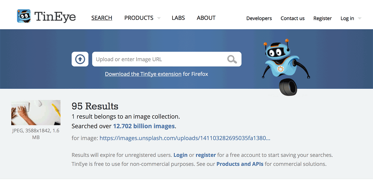 TinEye also has browser plugins for FireFox, Chrome, Opera and IE.