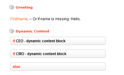 - Dynamic content to tailor each email to each recipient by automatically customizing specific parts of your email such as text, images or offers.