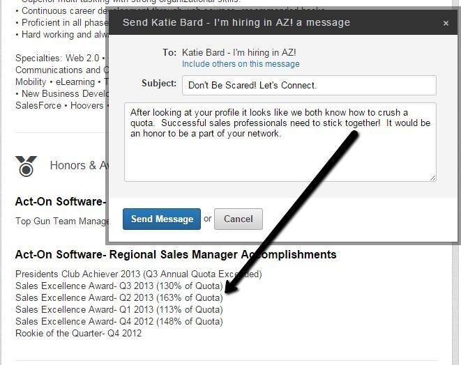The bread and butter of my success is referrals. (Of course, I would hope that all sales professionals work off referrals, but that’s for another blog post another time.) As soon as I get permission from my referral partner, I go straight to LinkedIn and make the connection. I’m doing this before I even send the email or make the call. No need to share an example for this one. You all know how it’s done, but we all just need to make a habit of doing it.