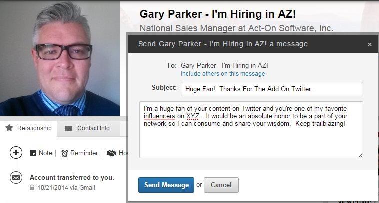 This is only for my Twitter peeps, but I just started doing this recently, and I’ve made some of my best connections with influencers. Once I see a connection made on Twitter and we have a little engagement, I go to LinkedIn and get connected. I’ve found that influencers are more likely to connect on Twitter than LinkedIn. Get the connection into their network while you are top of mind.