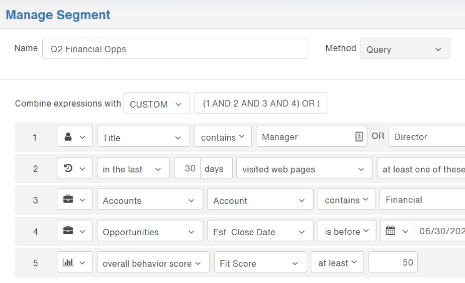Integrating Salesforce with Act-On marketing automation software empowers you to collect information for improved visibility into (and understanding of) prospect and customer behavior and preferences, streamline everyday processes, and focus your efforts on those initiatives that increase your bottom line. interests. Act-On’s advanced and dynamic marketing segmentation features help you achieve precise audience segmentation to pair great content and messaging with enthusiastic targets!