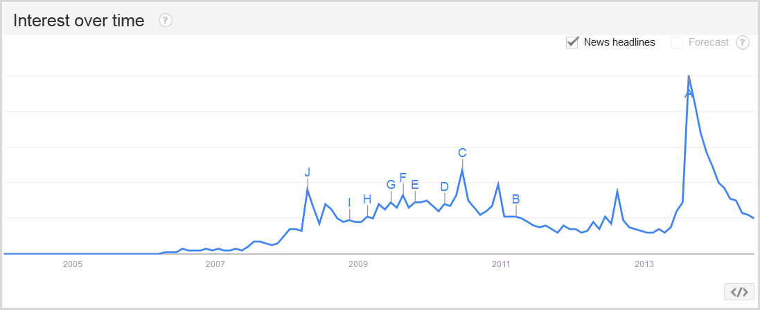 The Google trend line for the keyword phrase “Miley Cyrus.”