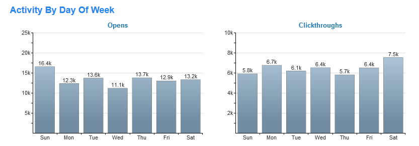 In fact, that’s pretty much what MarketingSherpa found in their marketing research on the topic. They asked email marketers, “How effective are emails sent each day of the week?” in the MarketingSherpa 2013 Email Marketing Benchmark Report. The results? Respondents said that Sunday was the least effective, with Saturday a close second. Tuesday was the most effective day for sending emails, according to email marketers. But are they right? Or does the data tell a different story?